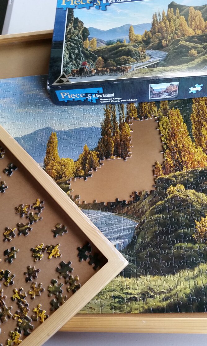 What are your hobbies? Jigsaw puzzles are a favourite of mine. This is my latest and it's proving a real challenge. My usual strategy is to locate the pieces according to shape and pattern, but that wasn't working too well for this one.