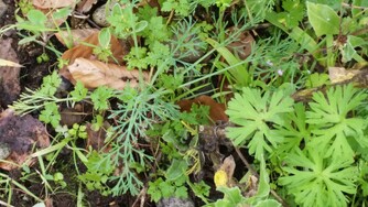 Below is a picture of a plant that I do want, right next to one that I don't want. (Don't know about you but this often happens in my garden!) I know from experience that if I get too committed to pulling out the plant I consider a weed, I take the one I want to keep with it, because their roots have become entwined.